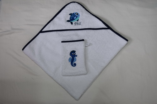 Produkt 2/1 | Windeltasche / Kulturbeutel Groß Preis 19 Euro Klein Preis 17 Euro | Produkt 2/2 | Badetuch / Waschlappen bestickt Preis Badetuch 30 Euro Preis Waschlappen 7 Euro zusammen 35 Euro |